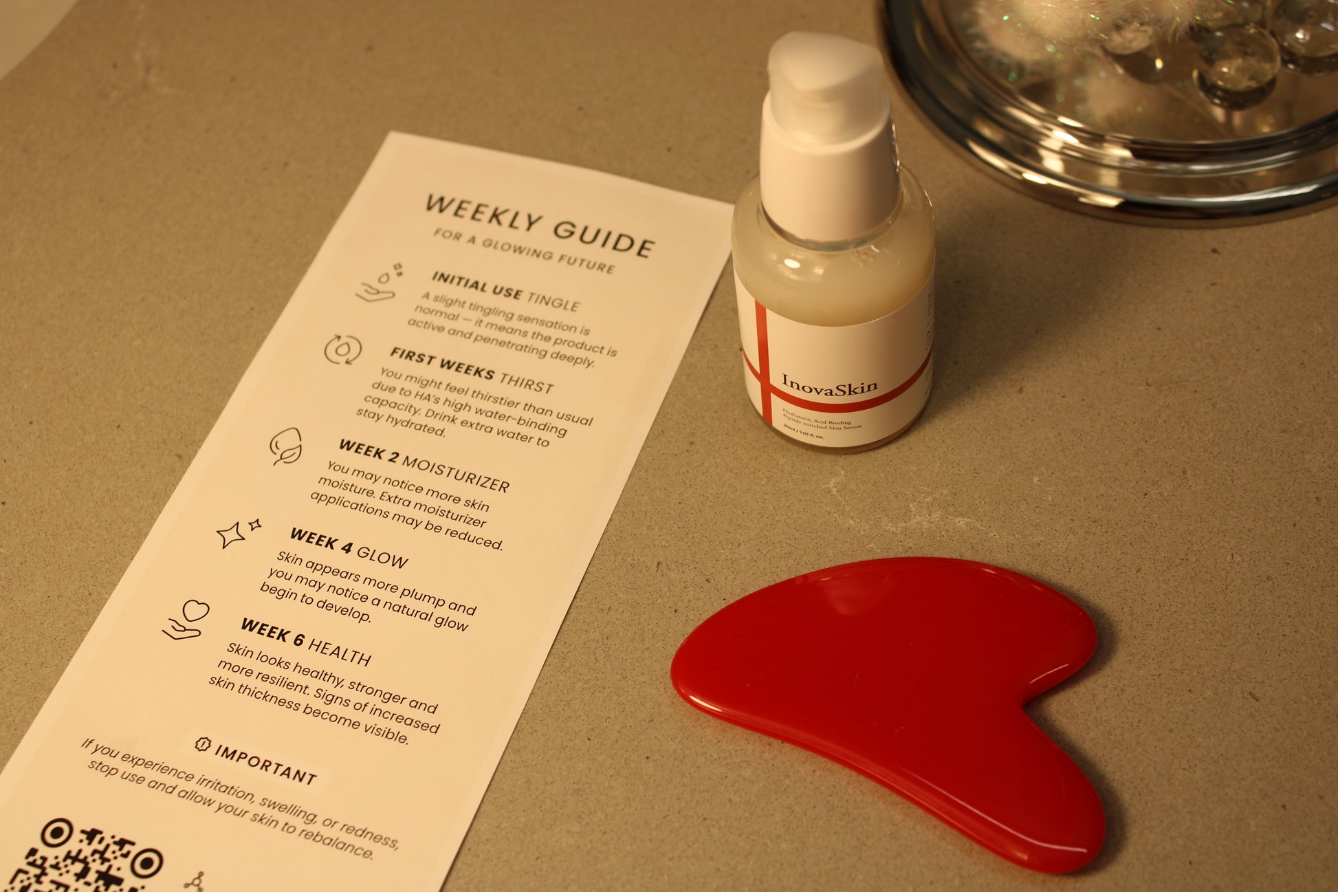 The InovaSkin Starter Kit is an elevated introduction to InovaSkin’s biomimetic approach to skin care—designed to support hydration, glow, and skin comfort through refined formulations and intentional ritual.